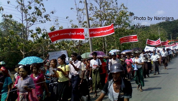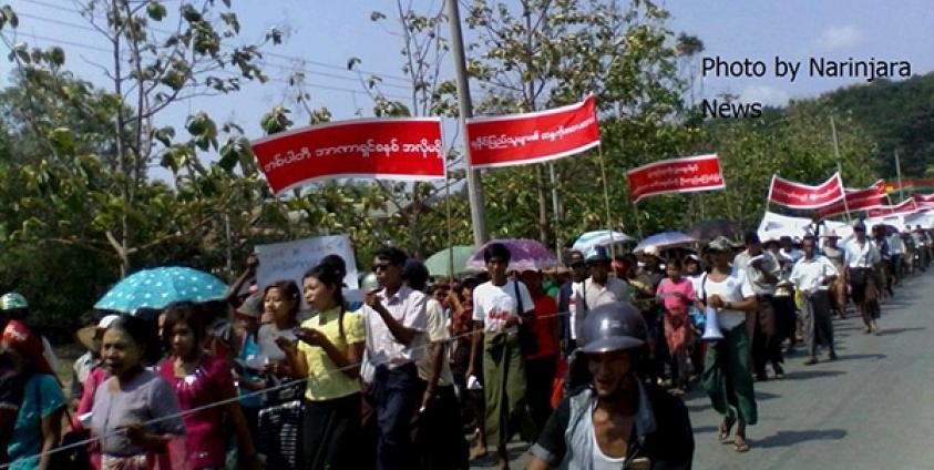 ဆန္ဒပြသူများသည် သံတွဲမြို့အဝင်တွင် စုရပ်လုပ်ပြီး မာဃလမ်း၊ ဘုရင့်နောင်လမ်း၊ မြို့ထဲလမ်းများကို ပတ်ပြီး ဆန္ဒဖော်ထုတ်ခဲ့ကြသည်။