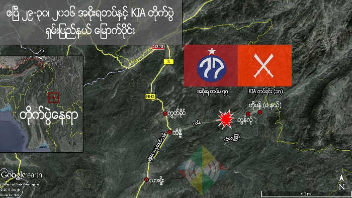 KIA တပ်မဟာ ၄ လက်အောက် တပ်ရင်း ၁၇ တပ်ဖွဲ့နှင့် အစိုးရတပ်မ ရ၇ တို့သည် ဧပြီ ၂၉ နှင့် ၃၀ ရက် နေ့တွင် တိုက်ပွဲဖြစ်ပွားခဲ့ပြီး ထိခို်က်ဒဏ်ရာရ စာရင်းကိုမူ မသိရကြောင်း လိုင်ဇာ ဗဟိုဌာနချုပ်မှ KIA ဒုဗိုလ်မှူးကြီး နော်ဘူ က ကချင်သတင်းဌာန KNG အတည်ပြုပြောခဲ့သည်။