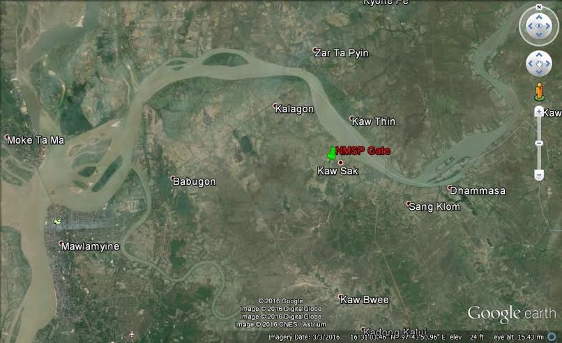 ကော့သပ်ကျေးရွာအနီးရှိမွန်ပြည်သစ်ပါတီဂိတ်(Google Earth)
