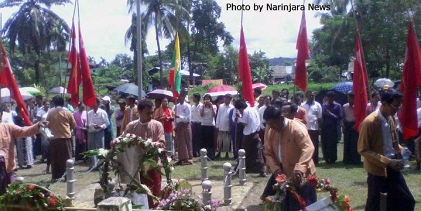 သံတွဲဒေသခံ ဦးခင်မောင်နိုင်မှ “ နံနက် ၁၀ နာရီ ၃၉ မိနစ်မှာ ဥသြဆွဲသံနဲ့ အတူ လွတ်လပ်ရေး ပန်းခြံထဲမှာ ရှိတဲ့ လွတ်လပ်ရေး ကျောက်တိုင်မှာ လွမ်းသူ့ ပန်းခွေချခဲ့ကြပါတယ်” ဟု ပြောသည်။