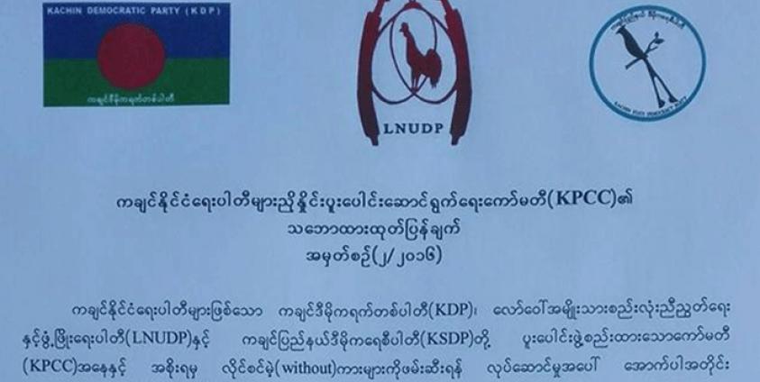 ကချင် ပြည်သူအကျိုး ပူးပေါင်း လုပ်ရန် ရည်ရွယ်ချက်ဖြင့် KPCC ကို ကချင်ဒီမိုကရက်တစ်ပါတီ (KDP)၊ လော်ဝေါ်အမျိုးသားစည်းလုံးညီညွတ်ရေးနှင့် ဖွံ့ဖြိုးရေးပါတီ (LNUDP)နှင့် ကချင်ပြည်နယ် ဒီမိုကရေစီပါတီ (KSDP) တို့မှ ၂၀၁၆ ဇွန်လ ၂၃ ရက်နေ့တွင် ဖွဲ့စည်းခဲ့သည်။