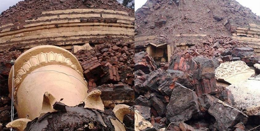 ရခိုင်ပြည် မင်းပြားမြို့နယ်ရှိ ရှေးဟောင်းသမိုင်းဝင် စေတီတော်တစ်ဆူသည် မိုးသည်းထန်မှုကြောင့် သြဂုတ်လ ၁၀ရက်နေ့ ညနေ ၄ နာရီခန့်တွင် ပြိုကျ  မြေခသွားခဲ့သည်ဟု သတင်းရရှိသည်။