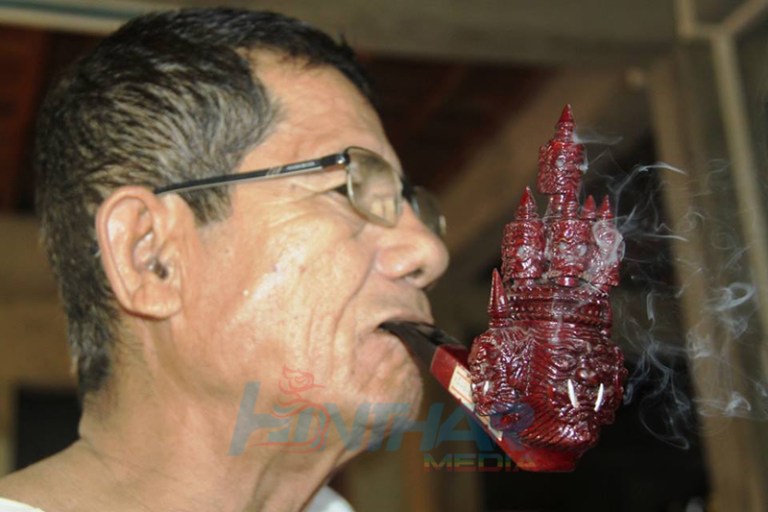 “ဆေးတံအတွက် သစ်သား ပန်းပု ထုတာတော့ အခမဲ့ ဖြစ်ပါတယ်။ ဆေးတံကို အလှဆင်နိုင်ဖို့ အခြား လုပ်ငန်းတွေအတွက် ငွေကြေး ကုန်ကျ မှုတွေ ရှိမယ်။ ကိုယ်ထူကိုယ်ထ လုပ်ရမယ် ဆိုရင်တော့ လုပ်ငန်း ပြီးစီးဖို့က နှောင့်နှေး နိုင်မယ်။ ဒေသကို အခု အခေါ်အဝေါ်အရ ဘီလူးကျွန်း ဆိုလို့ လက်ရှိ အမည်နာမ အထိမ်းအမှတ်အရ ခေါင်းဆယ်လုံးနဲ့ ဒသဂီရိ ဆေးတံကို လုပ်ရခြင်း ဖြစ်တယ်”ဟု ဦးမန်းငွေဝင်း ရှင်းပြသည်။