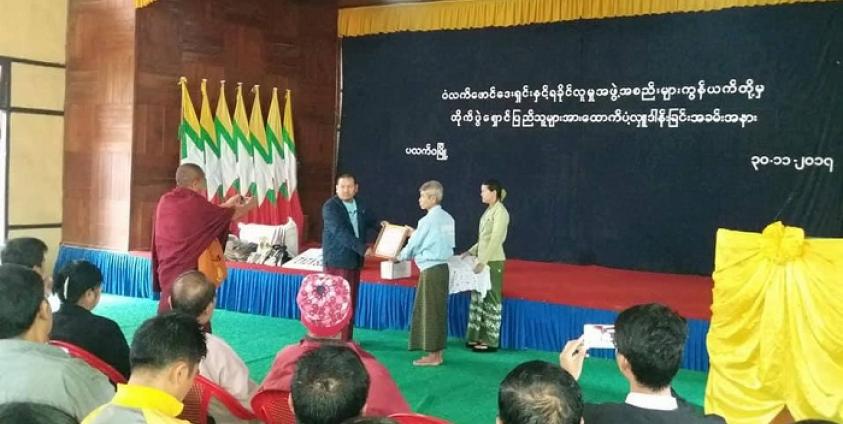 “ မြို့နယ်အာဏာပိုင်များ၊ စစ်ဘေးရှောင် ၃ ဦးနှင့် ချင်းလက်ဝကျေးရွာ အုပ်ချုပ်ရေးမှူး တို့ ရှေ့မှောက်မှာ ဒီပစ္စည်းတွေကို အခမ်းအနားနဲ့ ပလက်ဝမြို့နယ် အရဟိတ အဖွဲ့ကို လွဲပြာင်းပေးအပ်ခဲ့တာပါ။ ဆန်၊ စောင်၊ ပေါက်တူး၊ ဓား၊ ပုဆိန်၊ ငါးခြောက်နှင့် အခြား ရိက္ခာများပါဝင်ပြီး တန်ဖိုးငွေ စုစုပေါင်း ၅၃ သိန်းကျော်ဖိုး ရှိပါတယ်” ဟု ခိုင်ကောင်းစံက ပြောသည်။