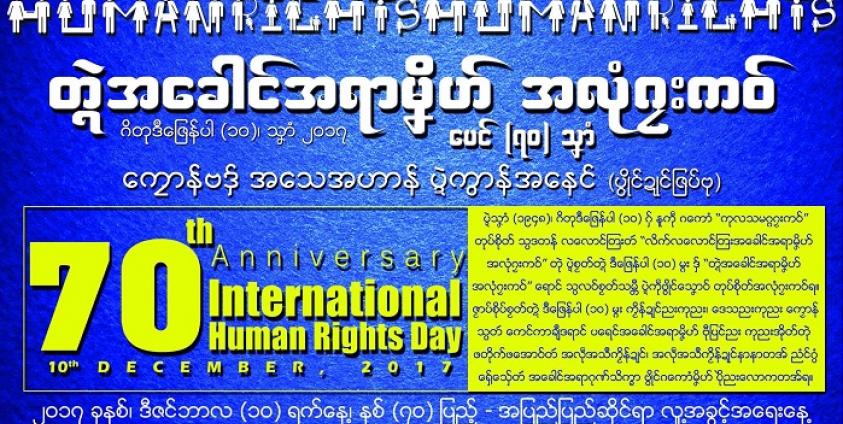 ဒီဇင်ဘာ (၁၀) ရက်နေ့တွင် ကျရောက်မည့် (၇၀) ကြိမ်မြောက် အပြည်ပြည်ဆိုင်ရာ လူ့အခွင့်အရေးနေ့အခမ်းအနားကို မွန်ပြည်နယ်၊ သံဖြူဇရပ်မြို့နယ်၊ အနင်းကျေးရွာ၌ ပြုလုပ်သွားမည်ဟု သိရသည်။