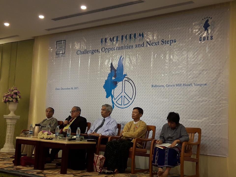 တိုင်းရင်းသားလူမျိုးရေးရာ ဖွံ့ဖြိုးရေးနှင့် သုတေသနအသင်း (CDES) မှ ကြီးမှူး၍ ယခုကဲ့သို့ ငြိမ်းချမ်းရေးဖိုရမ် များကို တိုင်းနှင့်ပြည်နယ်များတွင် အကြိမ် ၂၀ ခန့် ပြုလုပ်ပြီးဖြစ်ကြောင်း ဒေါက်တာဆလိုင်းလျန်မှုန်းက ပြောသည်။