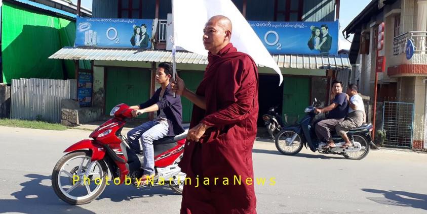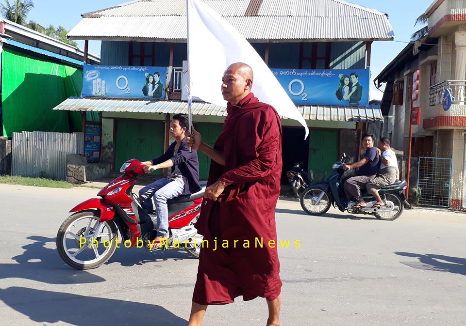 မြန်မာနိုင်ငံ ငြိမ်းချမ်းရေးနှင့် ရခိုင်ပြည်နယ်အရေး သဟဇာတကျကျဖြေရှင်းဆောင်ရွက်ရေးကို ရည်ရွယ်ပြီး စစ်တွေမြို့မှ ဆရာတော်တစ်ပါးသည် ဒီဇင်ဘာ ၁၉ ရက်နေ့တွင် တစ်ကိုယ်တော် လမ်းလျှောက် ဆန္ဒဖော်ထုတ်ခဲ့သည်။