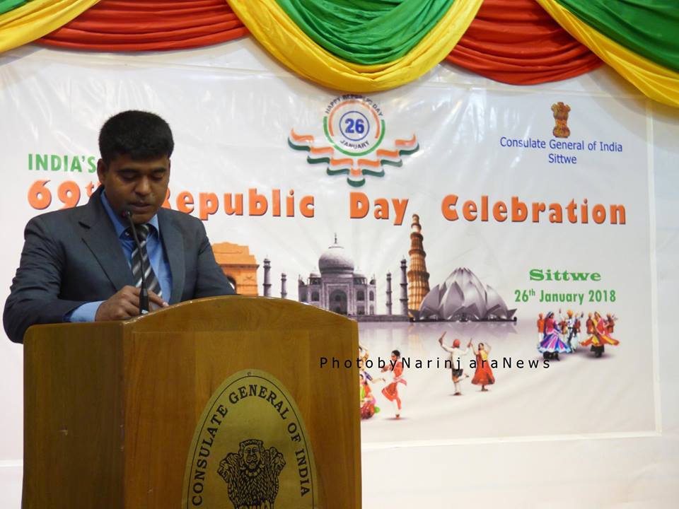 ၂၀၁၈ ခုနှစ် ဇန်နဝါရီလ ၂၆ ရက်နေ့တွင် ကျရောက်သော ၆၉ နှစ်မြောက် အိန္ဒိယပြည်သူ့ သမ္မတနိုင်ငံနေ့ အထိမ်းအမှတ် ညစာစားပွဲကို ဇန်နဝါရီလ ၂၆ ရက်နေ့ ည ၇ နာရီအချိန်တွင် စစ်တွေမြို့ စစ်တွေဟိုတယ်၌ ပြုလုပ်ခဲ့သည်။
