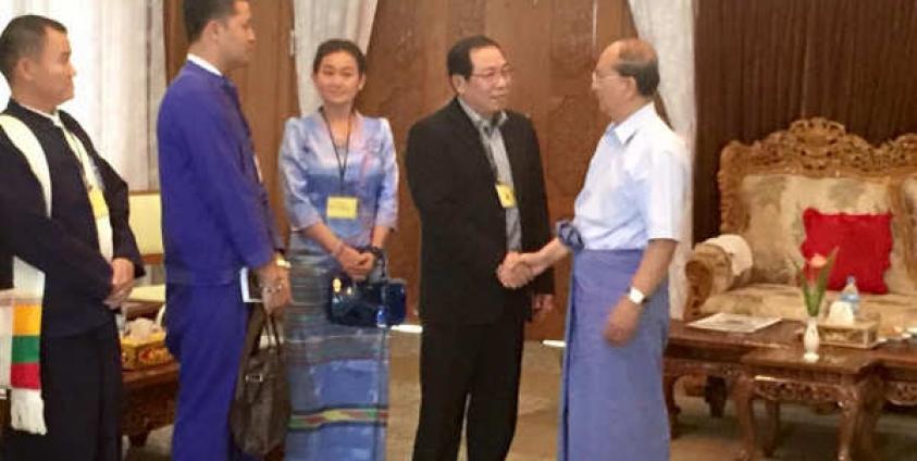 သမ္မတ ဦးသိန်းစိန်သည် ကျိုင်းတုံမြို့တို့ ရောက်ရှိစဉ် "ဝ" အထူးဒေသပေါက်ယူရီ ဦးဆောင်သောအဖွဲ့၊ မိုင်လား အထူးဒေသ(၄) အဖွဲများနှင့် RCSS/SSA အဖွဲ့တို့ကို သီးခြားစီတွေ့ဆုံခဲ့ခြင်းဖြစ်သည်။