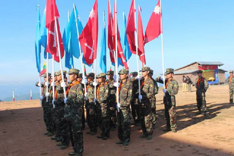 ရှမ်းပြည် ပြန်လည်ထူထောင်ရေးကောင်စီ/ရှမ်းပြည်တပ်မတော်(RCSS/SSA)စစ်ရေးပြအခမ်းအနားကိုတွေ့ရစဉ်။