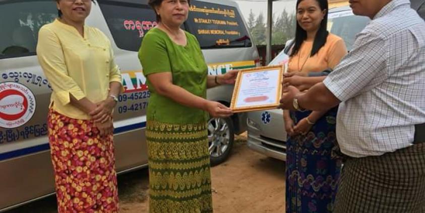 ဒေါက်တာစောမြအောင် ဖောင်ဒေးရှင်းမှ မြောက်ဦးသွေးလှူရှင်အသင်းသို့ လူနာတင်ယာဉ် ၂ စီးလှူဒါန်း
