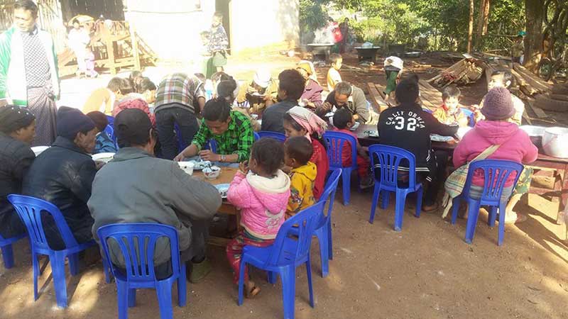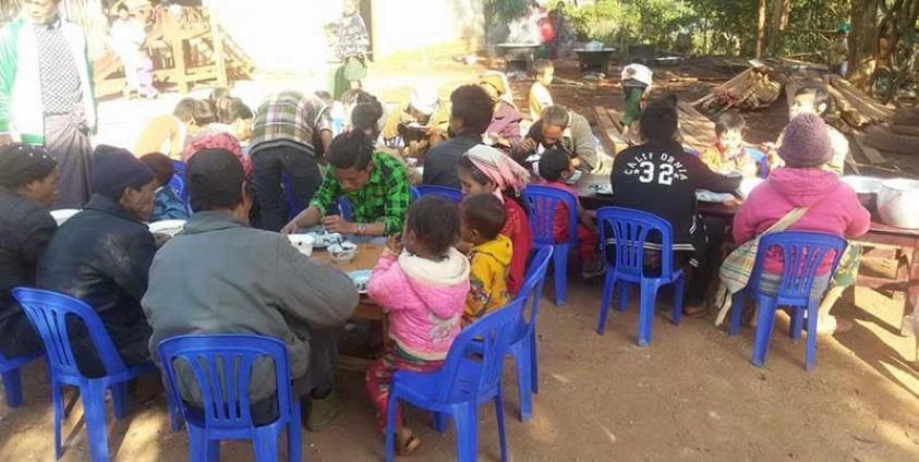 “နမ့်ပိုင်၊ ပိန်းထွမ်၊ ဆွတ်းမွန်း ၃ ရွာကျန်နေသေးတယ်။ တမြန်နေ့က ပန်ဆော့ရွာသားတွေပြန်သွားတယ်။ မနေ့ကကျတော့ ပန်ကွတ်ရွာသားတွေပြန်သွားတယ်။ ပစ်ခတ်သံတွေငြိမ်သွားပြီဆိုလို့ သူတို့ပြန်သွားကြတယ်။ ကျန်တဲ့ ၃ ရွာကကျတော့ မပြန်ရဲသေးတာက သူတို့ရွာထဲကို အစိုးရစစ်ကြောင်းက ၀င်ထွက်သွားလာ မွှေနှောက်နေတုန်းမို့ မပြန်ရဲသေးတာ။” – ဟု စစ်ဘေးရှောင်များအား အစားအသောက်နှင့်ကျန်းမာရေး ကူညီစောင့်ရှောက်မှုပေးနေသည့် နန်းခမ်း ကပြောသည်။