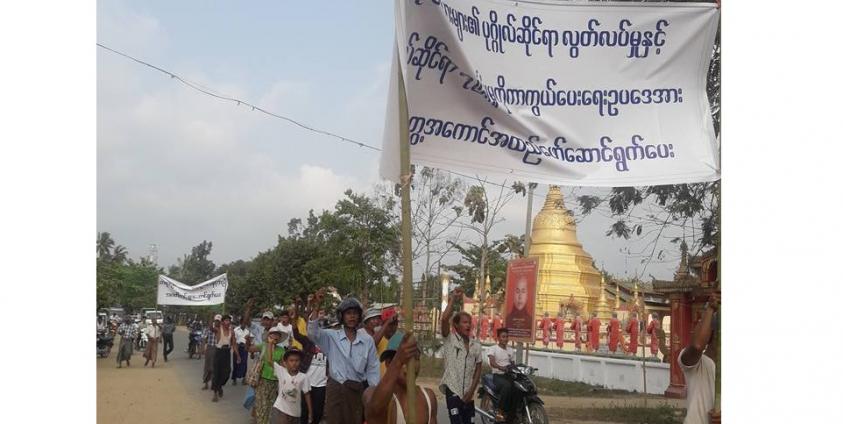 ရခိုင်ပြည်နယ် ဂွမြို့နယ် လောင်းကျိုးတွင် ဒေသခံ အမျိုးသမီး တစ်ဦး၏ အိမ်ခြံမြေကို သူဝယ်ထားသော ခြံဟုဆိုကာ မန္တလေးမှ သူဌေးတစ်ယောက်မှ ခြံလာခတ်သဖြင့် ကျေးရွာသား ၄၀ လောက်က ဂွမြို့ပေါ်တက်၍ ဆန္ဒဖော်ထုတ်ခဲ့သည်ဟု သတင်းရရှိသည်။