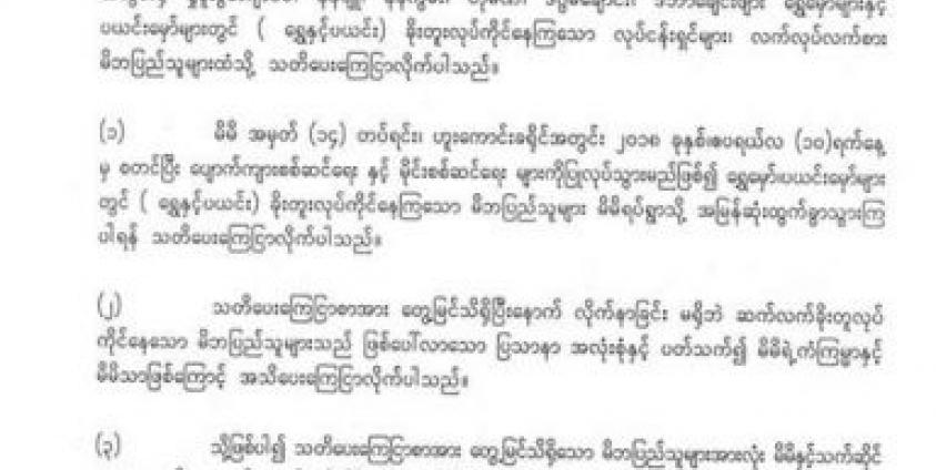 ထုတ်ပြန်ချက်ထဲတွင် သတိပေးကြေငြာစာအား တွေ့မြင်သိရှိပြီးနောက် လိုက်နာခြင်းမရှိပဲ ရွှေနှင့် ပယင်းများအား ဆက်လက်လုပ်ကိုင်နေသော မိဘပြည်သူများသည် ဖြစ်ပေါ်လာသော ပြသာနာအလုံးစုံနှင့် ပတ်သက်၍ မိမိရဲ့ကံကြမ္မာနှင့် မိမိသာဖြစ်ကြောင်း အသိပေးကြေငြာလိုက်သည်ဟု ပါရှိသည်။
