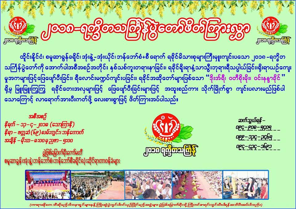 ရခိုင်ရိုးရာသင်္ကြန်ပွဲတော်ကို ဘန်ကောက်မြို့ ဖက္ကဆံ (၆၉) လမ်းတွင် ဧပြီ ၁၃ ရက်နေ့ နံနက် ၈ နာရီမှ ညနေ ၅ နာရီထိ ကျင်းပ ပြုလုပ်သွားဖြစ်ကြောင်း သိရသည်။