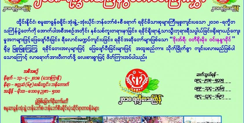 သင်္ကြန်ပွဲတော် အတွင်း နှစ်သစ်ကူးတရားနာခြင်း၊ ရခိုင်ရိုးရာ နံ့သာသွေး ဘုရားရေသပ္ပါယ်ခြင်း၊ ရိုးရာယဉ်ကျေးမှု အကများဖြင့် ဖြေဖျော်ခြင်း၊ ရေလောင်းမဏ္ဍပ်တွင် ရေကစားခြင်း၊ ရခိုင် အဆိုတော်များ ဖြစ်ကြသော ဒိုးအ်ရီ၊ ဝတီစိုးမိုးနှင့် ဝင်းနန္ဒာခိုင်တို့မှ ရခိုင်သီချင်းများဖြင့် မြူးမြူးကြွကြွ သီဆိုဖြေဖျော်ခြင်း စသည့် အစီအစဉ်များကိုလည်း ထည့်သွင်း ကျင်းပသွားမည် ဖြစ်ကြောင်း ပွဲကျင်းပရေး ကော်မတီအဖွဲ့ဝင် ကိုဘိုဘိုက ပြောကြားသည်။