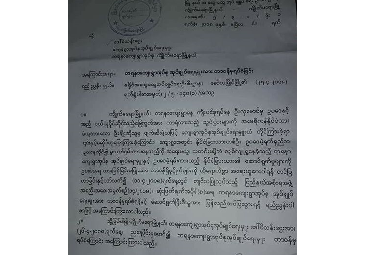အုပ်ချုပ်ရေးမှူးတာဝန်ရပ်စဲကြောင်း အကြောင်းကြားစာ(Copy)
