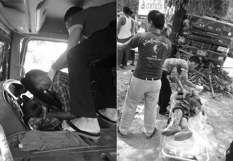 “ ၂ရက်ဆက်တိုက် အရပ်သားကို ထိတယ်။ ဘယ်အဖွဲ့ဆိုတာတော့ ကျနော်တို့လည်း မသိဘူး။ ကျနော်တို့ကို ဖုန်းဆက် အကူအညီတောင်းလို့ ကျနော်တို့ ဒဏ်ရာရတဲ့သူတွေကို သီပေါဆေးရုံပို့ခဲ့ရတယ်။ မနေ့က ကားသမား ကတော့ ပွဲချင်းပြီး သေဆုံးသွားတယ်။ ကျန်တာတော့ ခြေထောက်ထိတယ်။ စိုးရိမ်စရာ မရှိဘူး” ဟု ကိုမျိုးက ဆိုသည်။