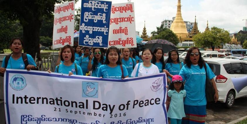 အစိုးရမှ ရေရှည်တည်တံ့ခိုင်မြဲသော ငြိမ်းချမ်းရေးတည်ဆောက်ရာတွင် လူအခွင့်အရေးနှင့် အခြေခံ လွတ်လပ်ခွင့်များ၊ ကျားမ တန်းတူအခွင့်အရေး၊ အခွင့်အလမ်းများနှင့် လွတ်လပ်စွာ ထုတ်ဖော်ပြောဆိုခွင့်ကို အပြည့်အဝလေး စားမြှင့် တင်ခြင်း စသည့် ကမ္ဘာ့ကုလသမဂ္ဂ၏ ငြိမ်းချမ်းရေးအဓိပ္ပာယ် ဖွင့်ဆိုချက်ပါ တန်ဖိုးများနှင့်အညီ ဆောင်ရွက်ရန် လို အပ်ကြောင်း စက်တင်ဘာလ ၂၃ရက် အမျိုးသမီးများ အဖွဲ့ချုပ် (မြန်မာနိုင်ငံ)မှ ထုတ်ပြန်သည့် အပြည်ပြည်ဆိုင်ရာ ငြိမ်း ချမ်းရေး ထုတ်ပြန်ကြေညာချက်တွင် ဖော်ပြပါရှိသည်။