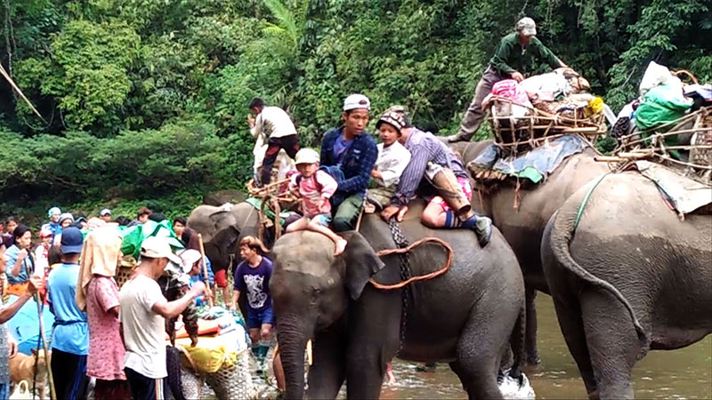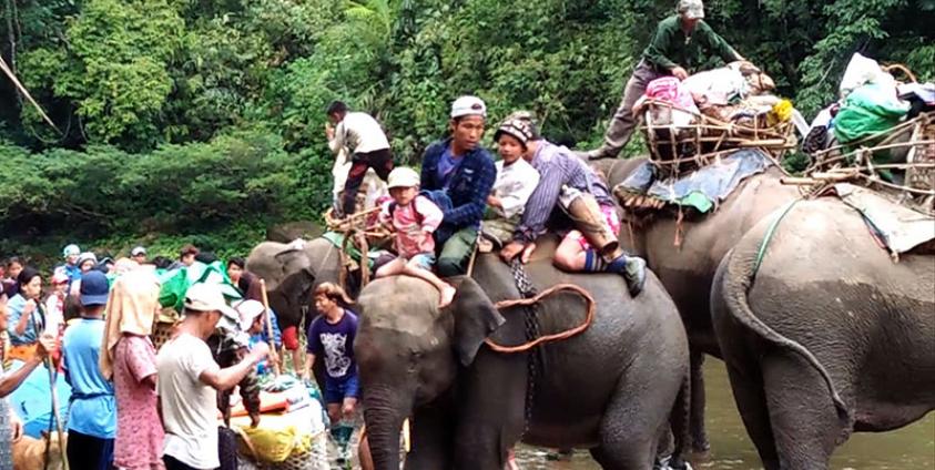 တိုက်ပွဲရှောင်လာကြသည့် ဒေသခံကျေးရွာသူကျေးရွာသားများအနက်မှ နာမကျန်းဖြစ်နေသူများ၊ ကလေးသူငယ်များနှင့် သက်ကြီးရွယ်အိုများ မြစ်ချောင်း ရေပြင်ကို ဖြတ်ကူးရာတွင် ဆင်များဖြင့် ကူညီဖြတ်သန်းပို့ဆောင်ပေးခဲ့သည်။