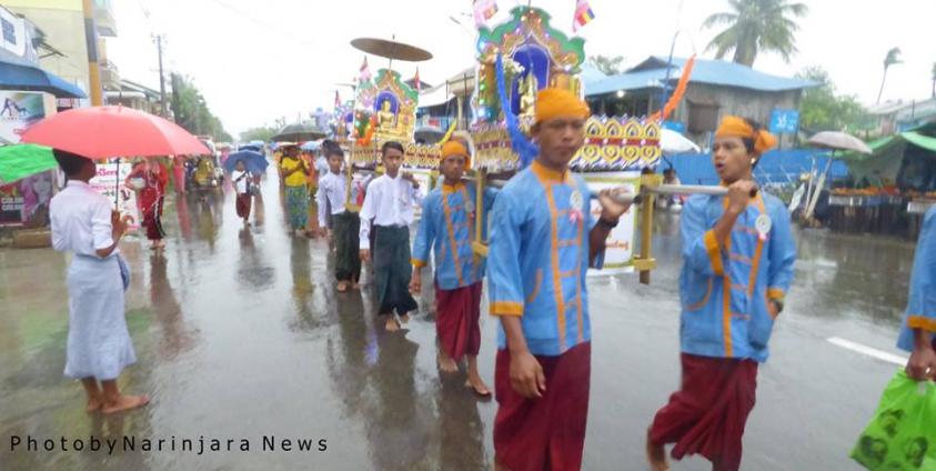 ဗုဒ္ဓဆင်းထုတော်များကို လှည့်လည်အပူဇော်ခံစဉ် လမ်းဘေး ဝေးယာမှ စေတနာရှင်များက အလှူငွေများ ထည့်ဝင် လှူဒါန်းခဲ့ကြသည်။