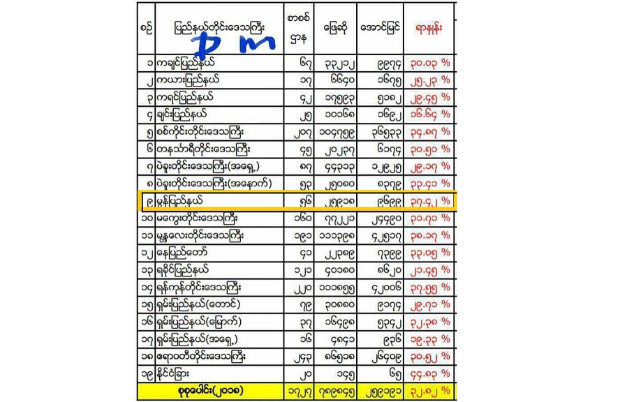 ဇွန်လ ၂ ရက်က တစ်နိုင်ငံလုံးထုတ်ပြန်ခဲ့သည့် ၂၀၁၈ ခုနှစ် တက္ကသိုလ်ဝင်စာမေးပွဲ အောင်စာရင်းအရ မွန်ပြည်နယ်