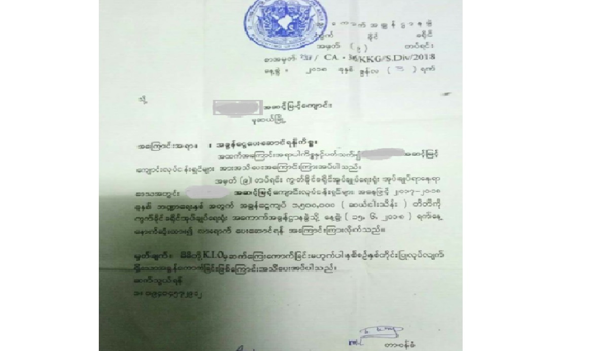 မူစယ် ပုဂ္ဂလိကကျောင်းထံ သို့ KIO မှ ပေးပို့သည့် စာရွက်တွင် ဆက်ကြေးကောက်ခြင်းမဟုတ်ကြောင်း၊ နှစ်စဉ်နှစ်တိုင်း အခွန်ကောက်ခြင်းသာဖြစ်သည်ဟု လည်း ရေးသားထားသည်။