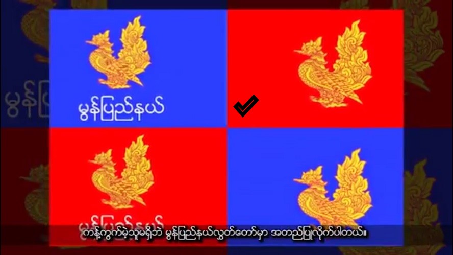 မွန်ပြည်နယ်ကို ကိုယ်စားပြုမည့် အလံအသစ်ကို ခန့်မှန်းချိန် ၂၄ နာရီအတွင်း မွန်ပြည်နယ်လွှတ်တော်က ရွေးချယ်လိုက်သည်။ အဆိုတင်သွင်းပြီး နောက်တစ်ရက်အကြာတွင် ကန့်ကွက်သူမရှိ အတည်ပြုလိုက်ခြင်းပင်။