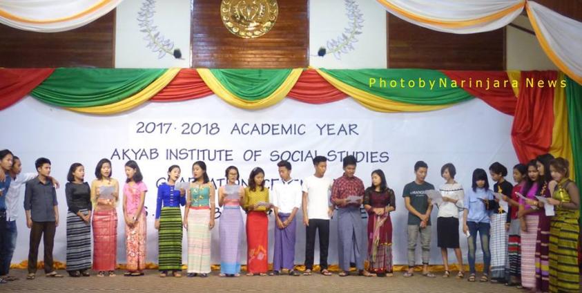 ရခိုင်ပြည်နယ် စစ်တွေမြို့တွင် ဖွင့်လှစ်ထားသည့် စစ်တွေ လူမှုရေးသိပ္ပံ ဒီပလိုမာ သင်တန်းကျောင်း ( Akyab Institute of Social Studies) မှ သင်တန်းသူ သင်တန်းသားများ သင်တန်းဆင်းဒီပလိုမာ လက်မှတ်ပေးအပ််ပွဲကို စစ်တွေဟိုတယ်တွင် ဇွန် ၁၆ ရက်နေ့က ကျင်းပ ပြုလုပ်ခဲ့သည်။