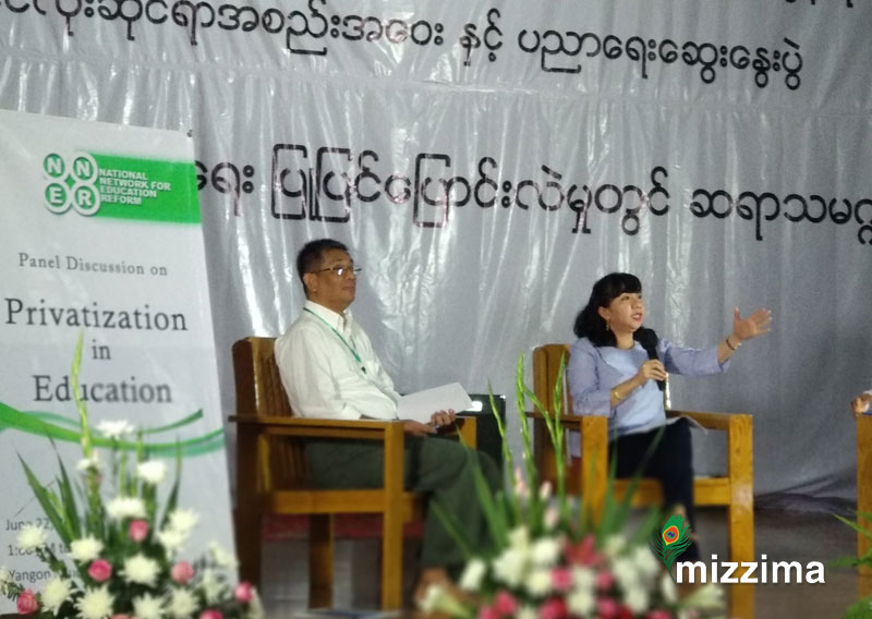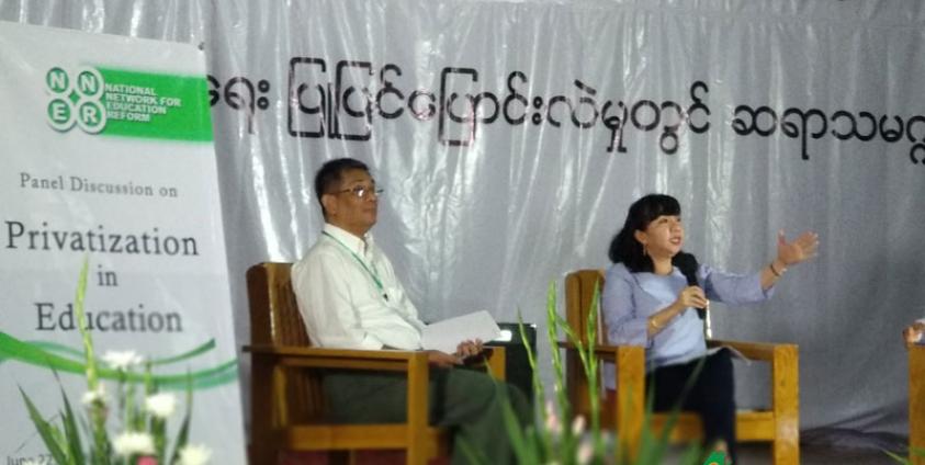 ဇွန်လ၂၂ ရက်နေ့က ရန်ကုန်မြို့ရှိ ခဝဲခြံမျက်မမြင်ကျောင်း၌ ပြုလုပ်သော NNER ၏ ပုဂ္ဂလိက ပညာရေးဆိုင်ရာ ဆွေးနွေးပွဲ Privatization in Education တွင် ပြောခြင်းဖြစ်သည်။