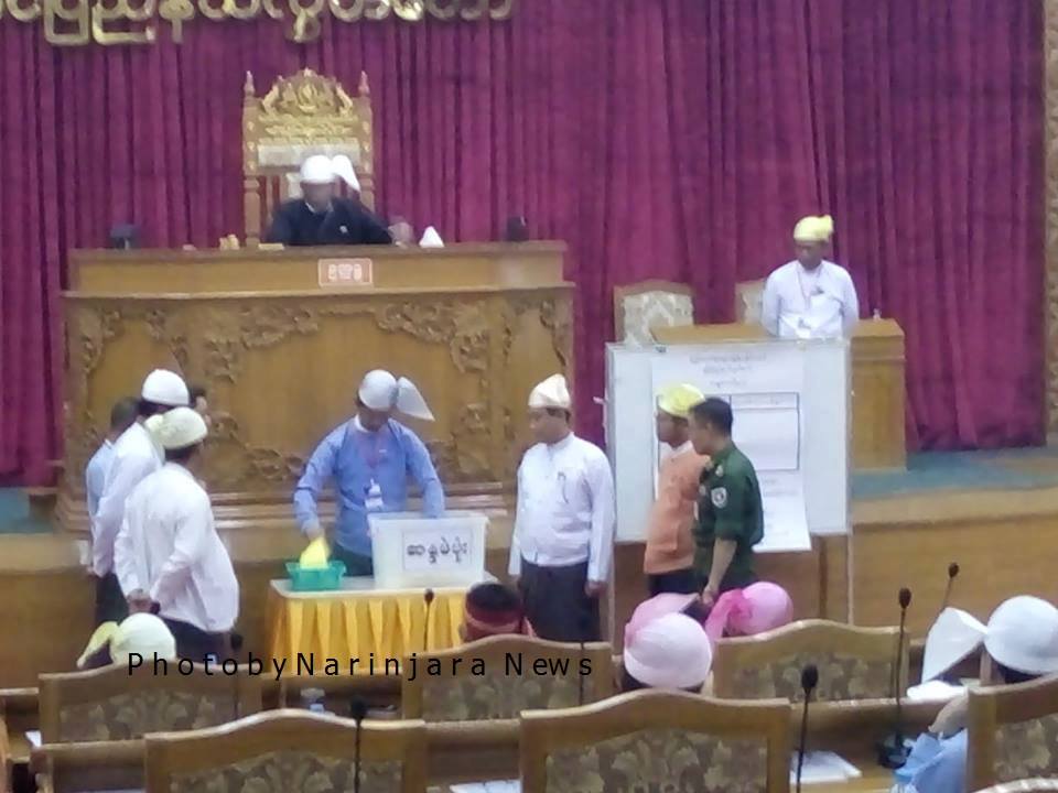 “ မဲက သုံးပုံနှစ်ပုံရမှ အဆိုက နိုင်မှာပါ။ နောက်ထပ် ၆ မဲလောက်လိုပါတယ်။ စုစုပေါင်း ၃၁ မဲရမှ နိုင်မှာပါ။ အခုက ၂၅ မဲဘဲ ရတဲ့ အတွက် အဆိုတင်သွင်းသူဘက်က ရှုံးနိမ့်သွားပါတယ်” ဟု မြောက်ဦးမြို့နယ် ပြည်နယ် လွှတ်တော်ကိုယ်စားလှယ် ဦးထွန်းသာစိန်က ပြောသည်။