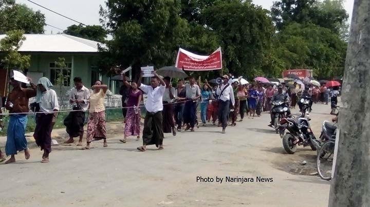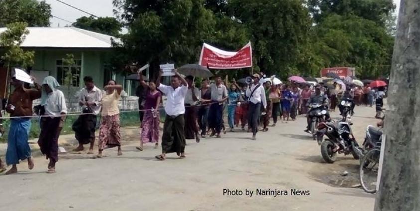 စစ်တပ်ကစွန့်လွှတ်မြေကို ဌာနဆိုင်ရာက ပူးပေါင်းလုပ်စားနေ၍ ကျောက်တော်တွင် ကန့်ကွက်ဆန္ဒပြ