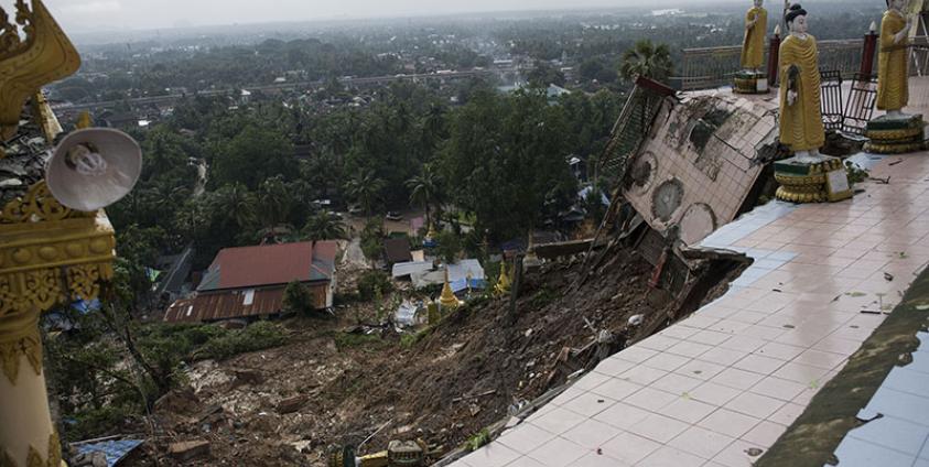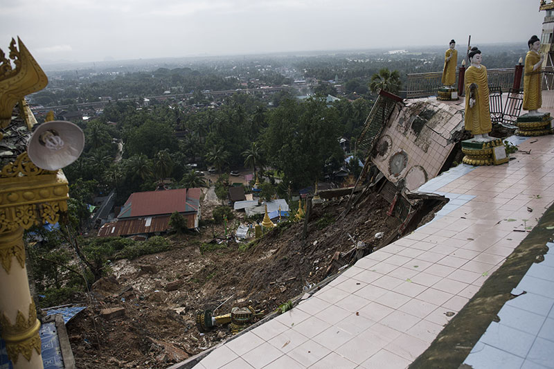 ပြီးခဲ့သည့် ဇွန်လ ၁၇ ရက်နေ့ နံနက်ပိုင်းက လေပြင်းများတိုက်ခတ်ပြီး မိုးအဆက်မပြတ် ရွာသွန်းမှုကြောင့် မော်လမြိုင်မြို့ ကျိုက်သံလန်ဘုရား အရှေ့ဘက်မုဒ်ဦး အနီး မြေသားနံရံများ ပြိုကျပြီး ဘုရားဝင်း အတွင်းရှိ ဓါတ်လှေကား၊ စောင်းတန်းနှင့် ဘုရားအောက်နားရှိ ဘုန်းကြီးကျောင်းမှ ကျောင်းဆောင်များ ပျက်စီးခဲ့ခြင်း ဖြစ်သည်။