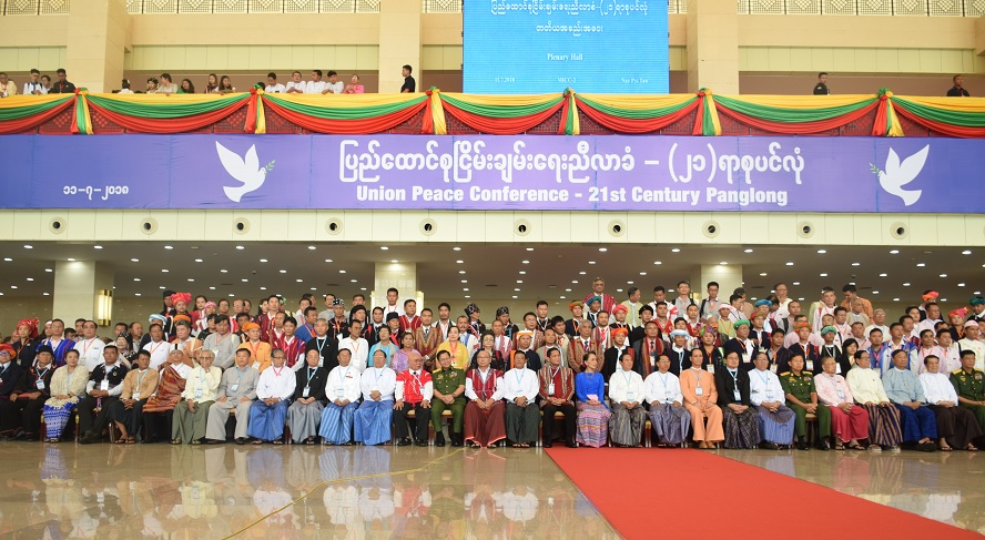 နေပြည်တော်ရှိ အပြည်ပြည်ဆိုင်ရာ ကွန်ဗင်းရှင်းဗဟိုဌာန ၂- MICC2 ၌ ယမန်နေ့နံနက် ၁၀ နာရီအချိန်က စတင်ကျင်းပခဲ့ရာ နိုင်ငံတော်သမ္မတအပါအဝင် အစိုးရအဖွဲ့ဝင်ဝန်ကြီးများ၊ တိုင်းရင်းသားလက်နက်ကိုင်ခေါင်းဆောင်များ၊ ကုလသမဂ္ဂကိုယ်စားလှယ်အပါအဝင် နိုင်ငံခြားသံတမန်များ၊ တရုတ်နှင့် ဂျပန်နိုင်ငံတို့မှ ကိုယ်စားလှယ်များ အစိုးရ၊ လွှတ်တော်၊ တပ်မတော်၊ တိုင်းရင်းသားလက်နက်ကိုင်များ EAOs နှင့် နို်င်ငံရေးပါတီများ အစုအဖွဲ့ ၅ ဖွဲ့မှ ကိုယ်စားလှယ်များ၊ တတ်သိပညာရှင်များ၊ ဘိတ်ကြားသင့်သူများ၊ တိုင်းရင်းသားကိုယ်စားလှယ်များနှင့် အရပ်ဖက်လူမှုအဖွဲ့အစည်း CSOs များ စုစုပေါင်း ၁၅၀၀ ဦးကျော် တက်ရောက်ခဲ့ကြောင်း တွေ့ရှိရသည်။