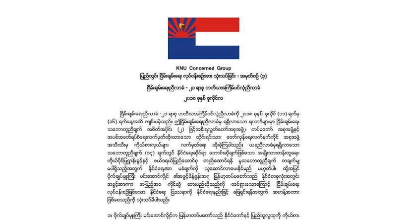 မကြာမီက ကျင်းပပြီးစီးခဲ့သည့် ပြည်ထောင်စုငြိမ်းချမ်းရေးညီလာခံ- ၂၁ ရာစုပင်လုံ(တတိယအစည်းအဝေး) မှ ရရှိလာသော သဘောတူညီချက် ၁၄ ချက်တွင် အမျိုးသားတန်းတူရေး၊ ကိုယ်ပိုင်ပြဌာန်းခွင့်နှင့် ဖက်ဒရယ်ပြည်ထောင်စုတည်ထောင်ရန်မူဝါဒ တစ်ချက်မျှမပါရှိကြောင်း KNU Concerned Group က သုံးသပ်လိုက်သည်။