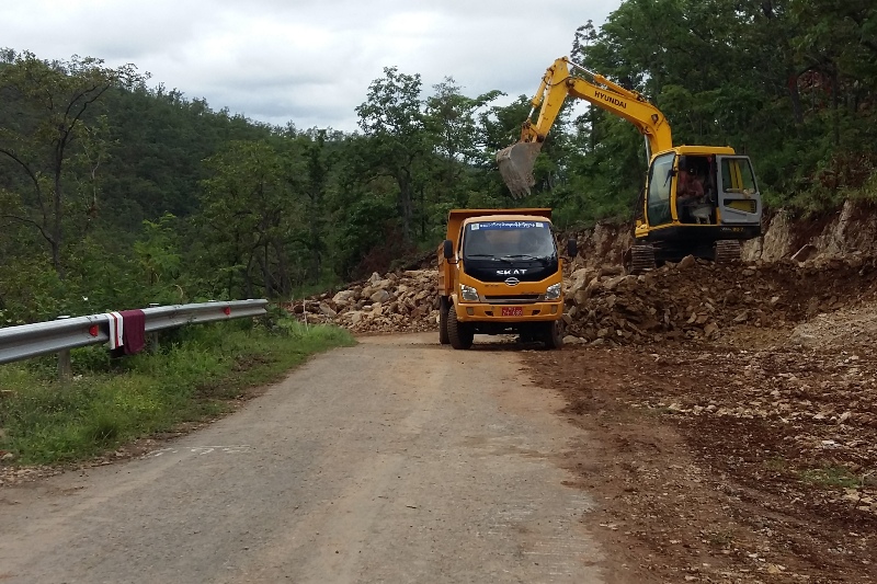 အဆိုပါ လမ်းအပိုင်းရှိ ကျောက်တောင်ကြီးများနှင့် မြေသားတောင်များကို စက်ယန္တရားကြီးများ၊ ကျောက်မိုင်းခွဲကိရိယာဖြင့် အသုံးပြုပြီး လမ်းချဲ့ထွင်နေသည်။ လမ်းပိတ်ချိန်မှာ နံနက် ၉ နာရီမှ ညနေ ၃ နာရီထိ ဖြစ်သည်။