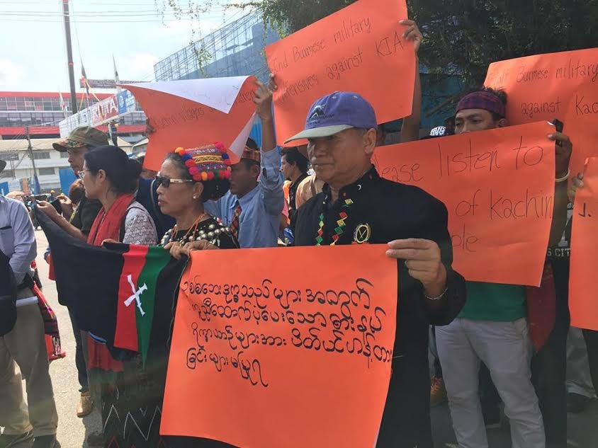 ထိုုအခြေအနေများကြောင့် မြန်မာအစိုုးရတပ်မတော်မှ ကချင်လွတ်လပ်ရေးတပ်မတော် KIA အပါအဝင် တခြားတိုုင်းရင်းသား လွတ်မြောက်ရေး တပ်ဖွဲ့များအား ထိုုးစစ်ဆင်နေမှုများကိုု ချက်ချင်း ရပ်တန့်ပေးဖိုု့ အပါအဝင် တောင်းဆိုုချက် ၆ ချက်ကိုု မြန်မာကောင်စစ်ဝန်ရုံုးမှာ လာရောက်တောင်းဆိုုခဲ့ကြသည်။