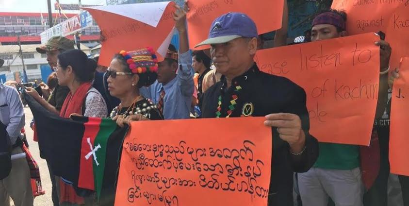 ကချင်ပြည်နယ်အတွင်း ထိုုးစစ်ရပ်တန့်ရန် တောင်းဆိုုဆန္ဒထုုတ်ဖော်ပွဲကိုု ထိုုင်းနုုိင်ငံရောက် ကချင်လူမျိုး ၅၀ ခန့် ပူးပေါင်းပါ၀င်ခဲ့ကြပြီး ၄င်းတိုု့၏ လုုိလားချက်များကိုုလည်း ကြွေးကြော်ခဲ့ကြသည်။