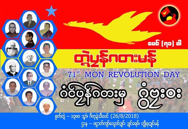 မွန်လူထုလူတန်းစားအလွှာအသီးသီးက ပေါင်းစည်းပြုလုပ်မည့် ၇၁ ကြိမ်မြောက် မွန်တော်လှန်ရေးနေ့ ဆိုင်းဘုတ်ပါ “တော်လှန်ဝံ့မှ လွတ်လပ်မည်” အဓိပ္ပါယ်ရှိ မွန်စာသားနှင့်ပတ်သက်၍ မွန်ပြည်သစ်ပါတီအား သြဂုတ်လ ၂၀ ရက်နေ့ နံနက်ပိုင်းတွင် မွန်ပြည်နယ်အစိုးရ ခေါ်ယူတွေ့ဆုံခဲ့ကြောင်း သိရသည်။