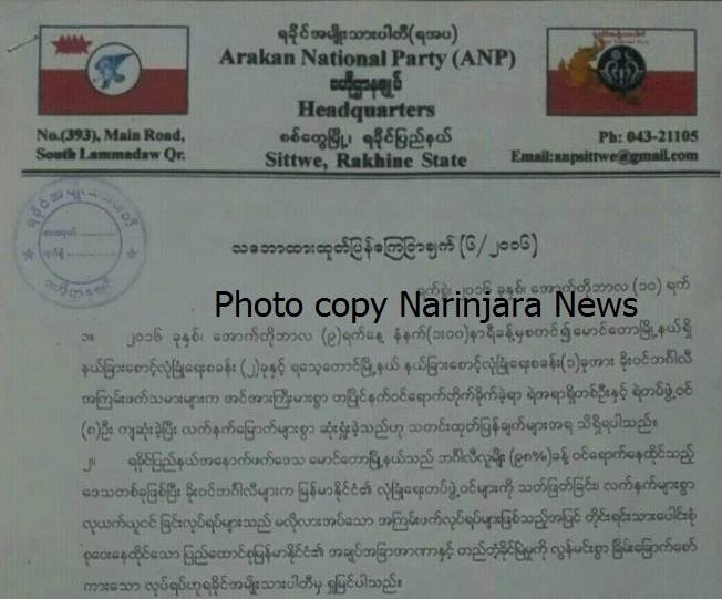 ယခုဖြစ်စဉ်သည် တိုင်းရင်းသားပေါင်းစုံံ စုဝေးနေထိုင်သော ပြည်ထောင်စုမြန်မာနိုင်ငံ၏ အချုပ်အခြာ အာဏာနှင့် တည်တံ့ခိုင်မြဲမှုကို လွန်မင်းစွာ ခြိမ်းခြောက်သော လုပ်ရပ်ဖြစ်သည်ဟုုလည်း ရခိုင်အမျိုးသားပါတီ၏ကြေညာချက်တွင်ဖော်ပြထားသည်။