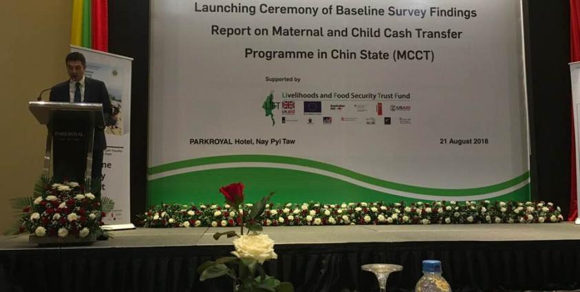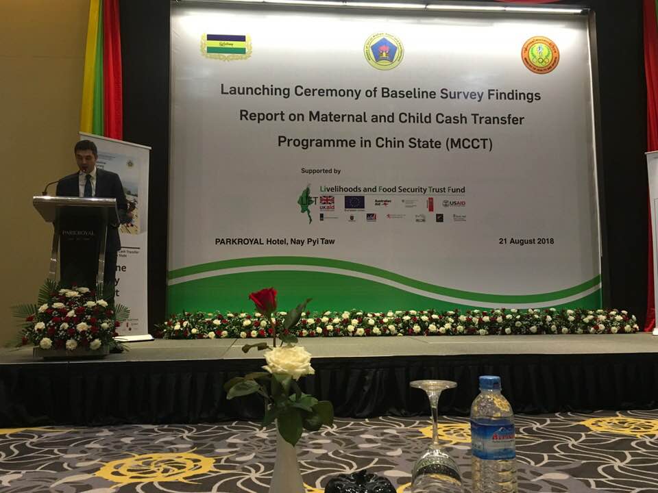အဆိုပါငွေကြေးထောက်ပံ့မှုအစီစဉ်နှင့်ပတ်သက်၍ Chin MCCT Baseline Report ဖြန့်ချီရေးအခမ်းအနားကို သြဂုတ်လ ၂၁ ရက်နေ့က နေပြည်တော် Park Royal ဟိုတယ်တွင် ကျင်းပပြုလုပ်ရာ ဝန်ကြီးပေါင်လွန်မင်းထန်ကိုယ်တိုင် တက်ရောက်ခဲ့သည်။