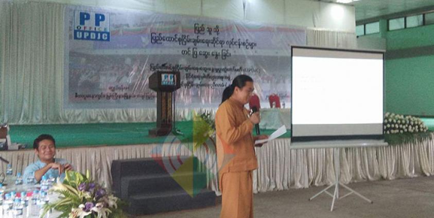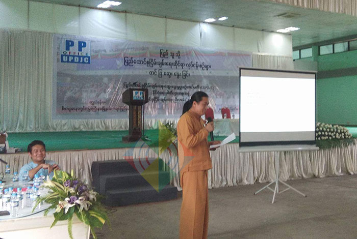 မဂျွယ်ခန်းမဆောင် လူထုအစည်းအဝေးတွင် လက်ရှိ ငြိမ်းချမ်းရေးတွင် ဖြစ်ပျက်နေသည့် အကြောင်းအရာများ မည်သည့် အတိုင်းအတာထိ ရောက်နေပြီ ဖြစ်ကြောင်း ပြည်သူလူထုအား ကျယ်ကျယ်ပြန့်ပြန့် သိစေလိုသောကြောင့် လူထုတွေ့ဆုံပွဲ ပြုလုပ်ခြင်းဖြစ်သည်ဟု UPDJC အတွင်းရေးမှုး ဦးစိုင်းကျော်ညွန့် ပြောပါသည်။
