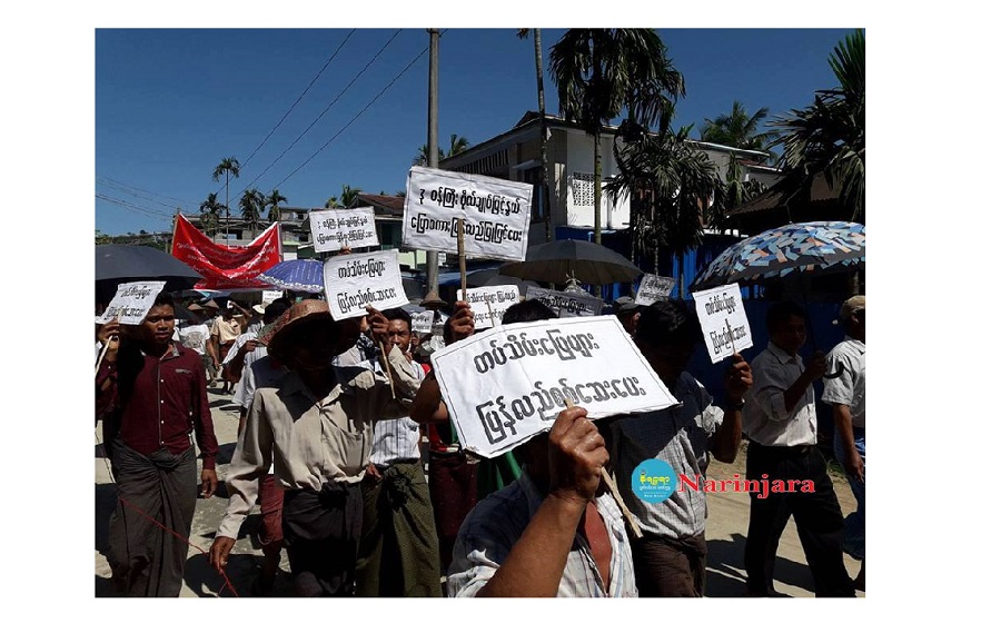 တပ်သိမ်းမြေဧက တစ်ထောင်ကျော်ကို ပြန်ပေးရန် ကျောက်တော်လယ်သမားများ ဆန္ဒပြ တောင်းဆို