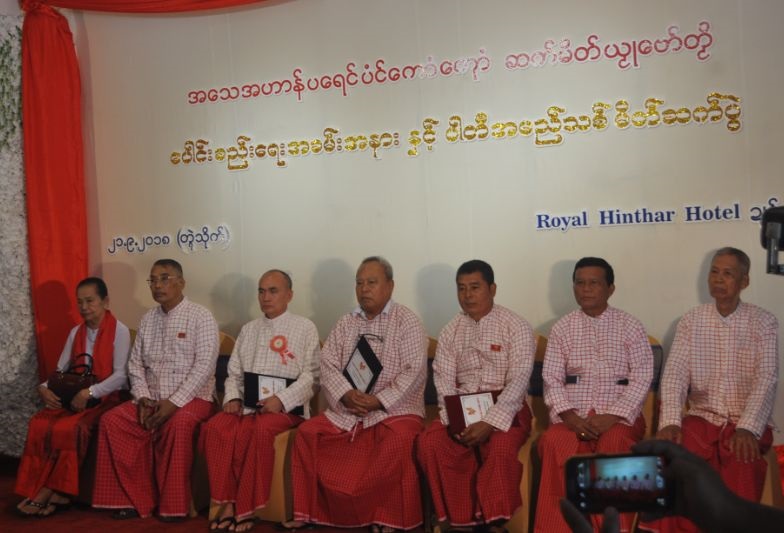 ပါတီပေါင်းစည်းရေးလက်မှတ်ရေးထိုးသူ ခေါင်းဆောင်များနှင့် အသိသက်သေများ(photo:MNA)