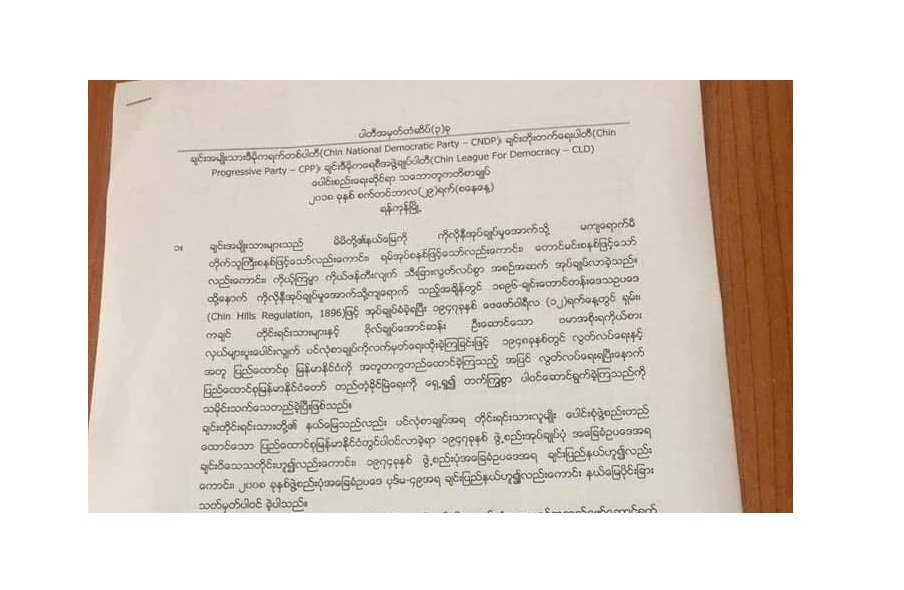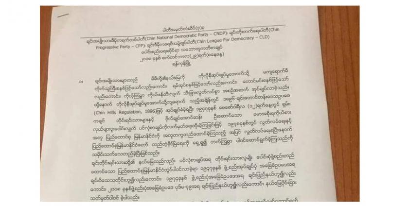 ချင်းအမျိုးသားပါတီ(၃)ခု ပေါင်းစည်းရေးဆိုင်ရာ သဘောတူစာချုပ် စက်တင်ဘာ ၂၉ရက်နေ့တွင် ရေးထိုးမည်