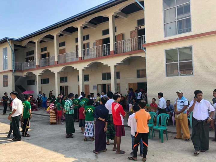 ရပ်ကွက် ၃ ကချင် ဘုရားကျောင်းသို့ လာရောက်တိမ်းရှောင် လာသည့် မန့်ပြိန်းကျေးရွာ ဒေသခံ များ (photo/Kan Thar)