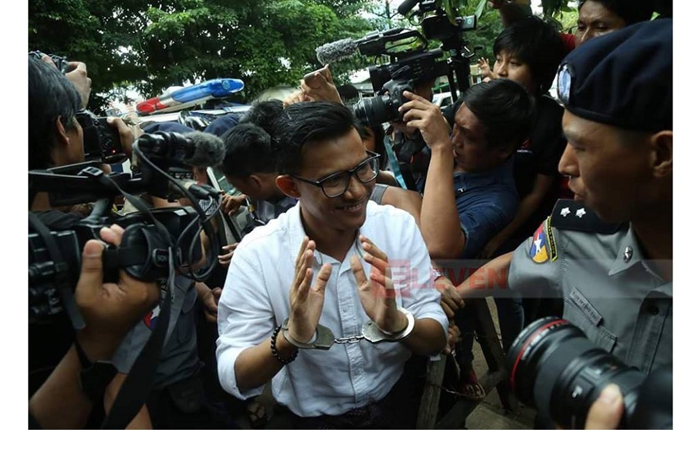 Eleven အလဲဗင်းမီဒီယာမှ သတင်းသမားသုံးဦးကို ရန်ကုန်တိုင်းအစိုးရအဖွဲ့က နိုင်ငံတော်အကြည်ညိုပျက်စေမှုပုဒ်မ ၅ဝ၅ (ခ) နှင့် တရားစွဲဆိုပြီး ယနေ့နံနက်ပိုင်းက အင်းစိန်ထောင်သို့ ပို့လိုက်သည်။