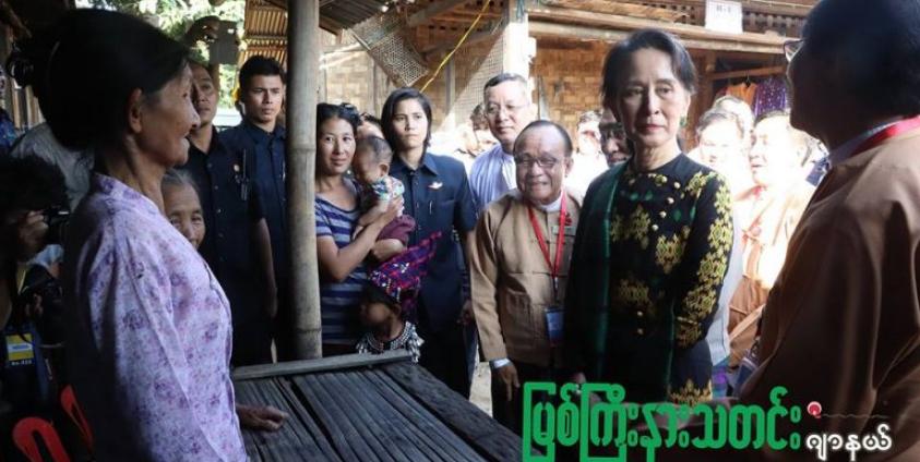 အောက်တိုဘာလ (၁၉) ရက်နေ့က ကချင်ပြည်နယ်သို့ ရောက်ရှိလာသည့် နိုင်ငံတော်၏ အတိုင်ပင်ခံပုဂ္ဂိုလ်မှာ မြစ်ကြီးနားမြို့ အနီးတဝှိုက်ရှိ စစ်ဘေးရှောင်စခန်းများသိုု့ သွားရောက်ခဲ့ပြီး စစ်ဘေးရှောင်ပြည်သူများနှင့် တွေ့ဆုံခဲ့သည်။