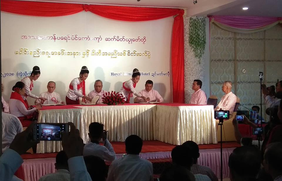 ပေါင်းစည်းရေးလက်မှတ်ရေးထိုးသူများနှင့် အသိသက်သေများ(photo:MNA)