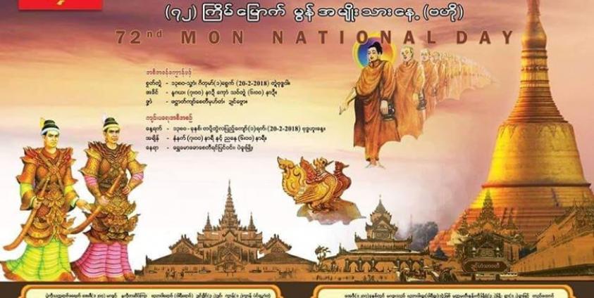 ယခုနှစ်တွင်ကျရောက်သော (၇၂) ကြိမ်မြောက် မွန်အမျိုးသားနေ့ (ဗဟို) အခမ်းအနားကို ဟံသာဝတီနေပြည်တော်ဟောင်း ဗဂိုး(ပဲခူး)မြို့ ရွှေမောဓောဘုရားဝင်း၌ လာမည့်တပို့တွဲလပြည့်ကျော် (၁) (ဖေဖော်ဝါရီလ-၂၀) ရက်နေ့တွင် ကျင်းပရန် စီစဉ်လျက်ရှိသည်။